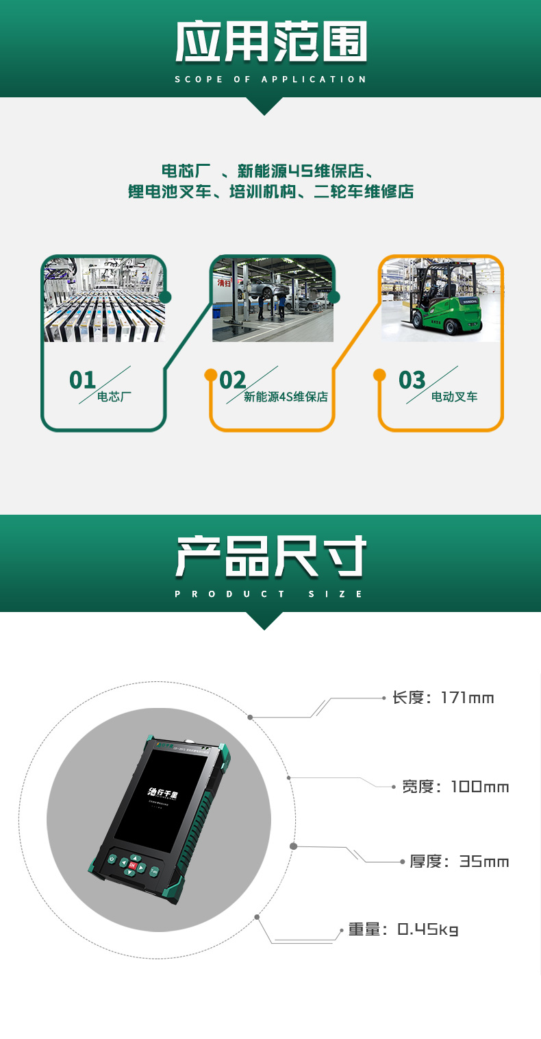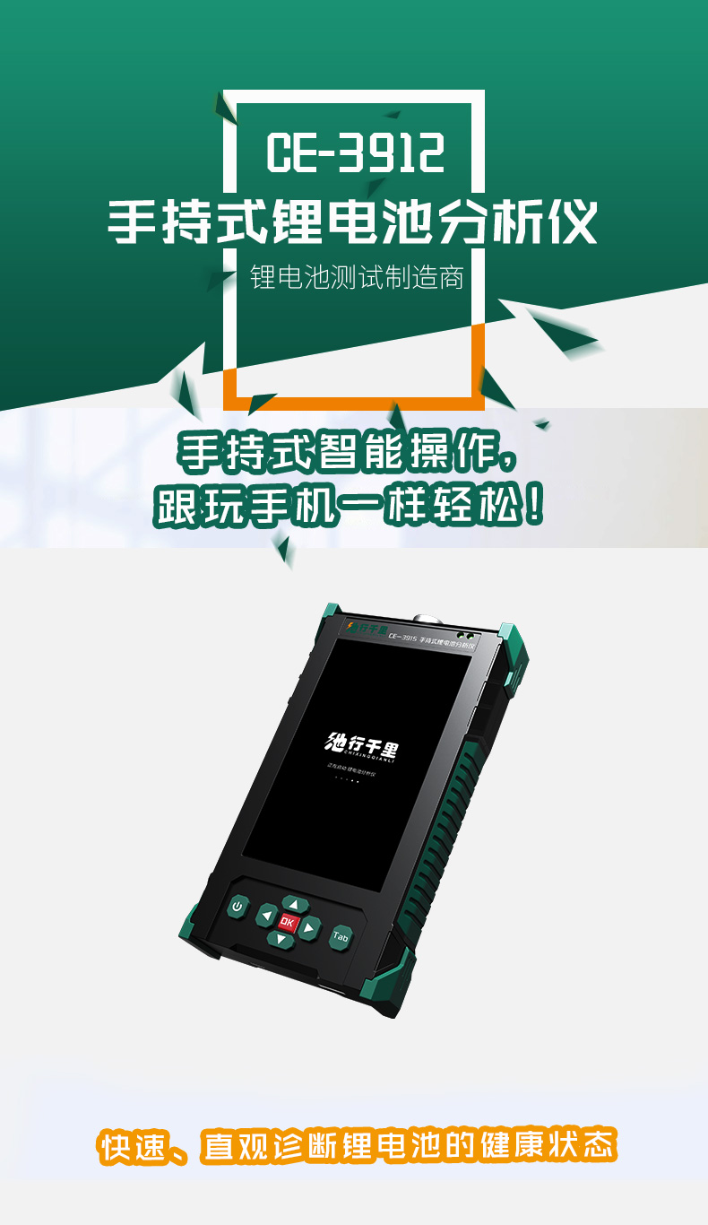 CE-3912 手持式鋰電池分析儀可快速、直觀診斷鋰電池的(內阻、電壓、容量分析)等參數,適用于汽車維修、電動車電池維修檢測等場所。