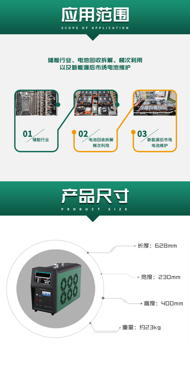 CP-F鋰電池包放電儀是針對(duì)新能源后市場開發(fā)的一款放電裝置,可用于電池拆解、電池廠商、整車廠電池包儲(chǔ)運(yùn)/返修、回收時(shí)的快速放電,是降低電池儲(chǔ)運(yùn)風(fēng)險(xiǎn)的理想設(shè)備。適用于儲(chǔ)能行業(yè)、電池回收拆解、梯次利用以及新能源后市場電池維護(hù)。