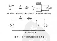 ? ? ? ?圖5. 1(b)為單相等值電路.注意標(biāo)為Vpcc二(PCC:公共連接點(diǎn))的電壓中含請(qǐng)波分量.這是由負(fù)載從系統(tǒng)汲取的諧波電流Ib流經(jīng)線路阻抗所致。如果PCC電壓還為除諧波派以外的其他設(shè)備供電,則在電壓崎變較嚴(yán)重的情況下可能缽致這些設(shè)備的非正常運(yùn)行。在IEEE 519標(biāo)準(zhǔn)中.很詳細(xì)地討論了諧波的限制值.
