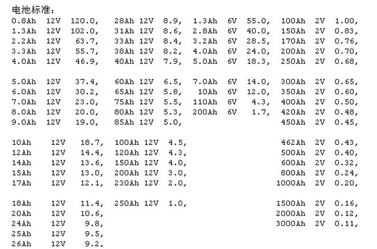 蓄電池內(nèi)阻列表: