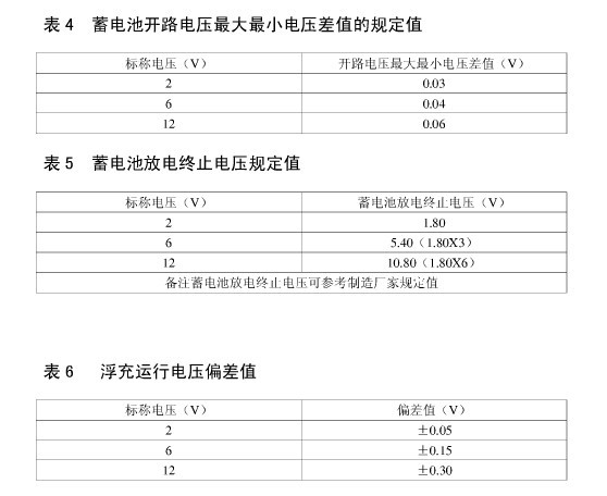 ? ? ? ?測(cè)量各個(gè)蓄電池的開路電壓,其所測(cè)蓄電池組中的單個(gè)蓄電池電壓***大值與***小值的差值應(yīng)符合表4的規(guī)定值。