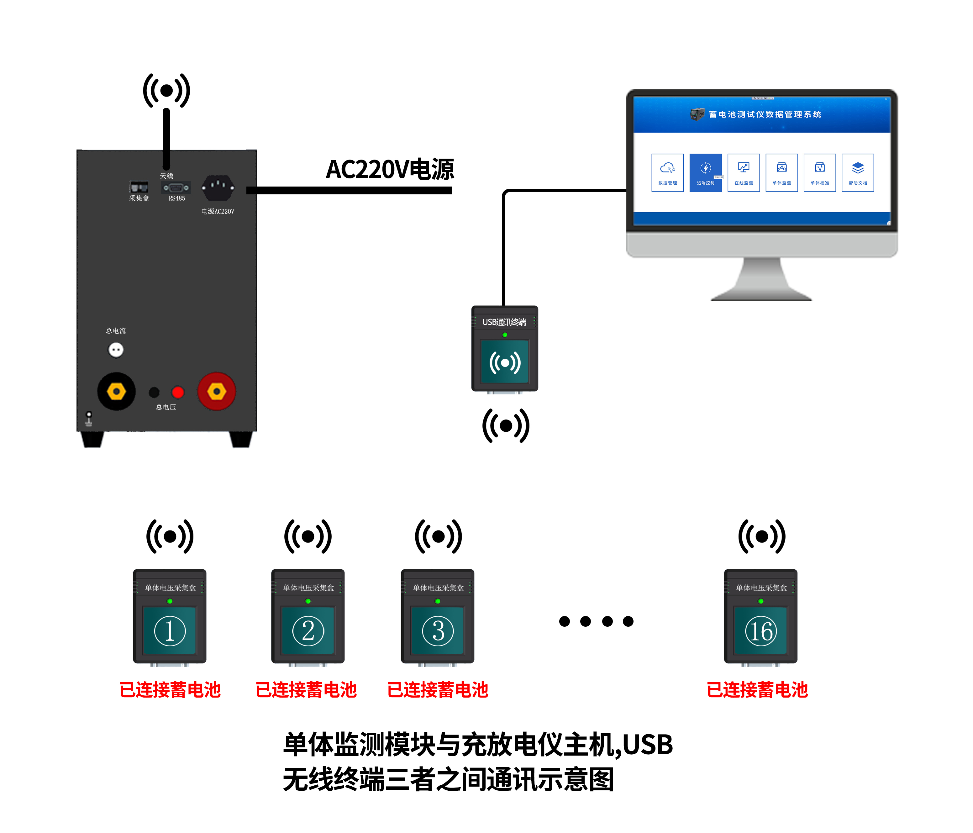 ?單體電壓采集盒具備多種采集方式:1.單體電壓采集盒與放電儀主機(jī)兩者之間進(jìn)行數(shù)據(jù)傳輸;2.單體電壓采集盒與USB無(wú)線終端兩者之間進(jìn)行數(shù)據(jù)傳輸;3.單體電壓采集盒與放電儀主機(jī)、USB無(wú)線終端,三者之間進(jìn)行數(shù)據(jù)傳輸。
