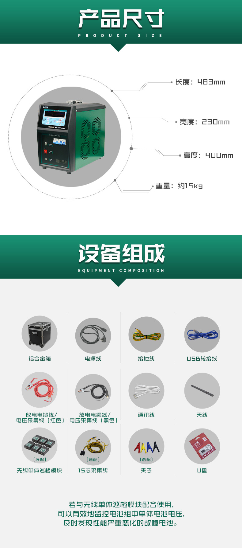?具備無(wú)線單體采集功能:可通過(guò)放電儀實(shí)時(shí)監(jiān)測(cè)各單體電壓狀況,兼容2V/4V/6V/12V單體電壓監(jiān)測(cè),單個(gè)模塊支持12只電池監(jiān)測(cè)。