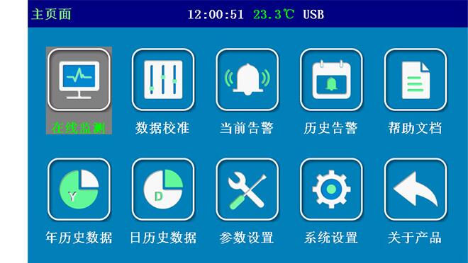 ?收斂主機(jī)顯示界面:歷史數(shù)據(jù)查看、參數(shù)設(shè)定、數(shù)據(jù)校準(zhǔn)、告警分析、系統(tǒng)設(shè)置等。