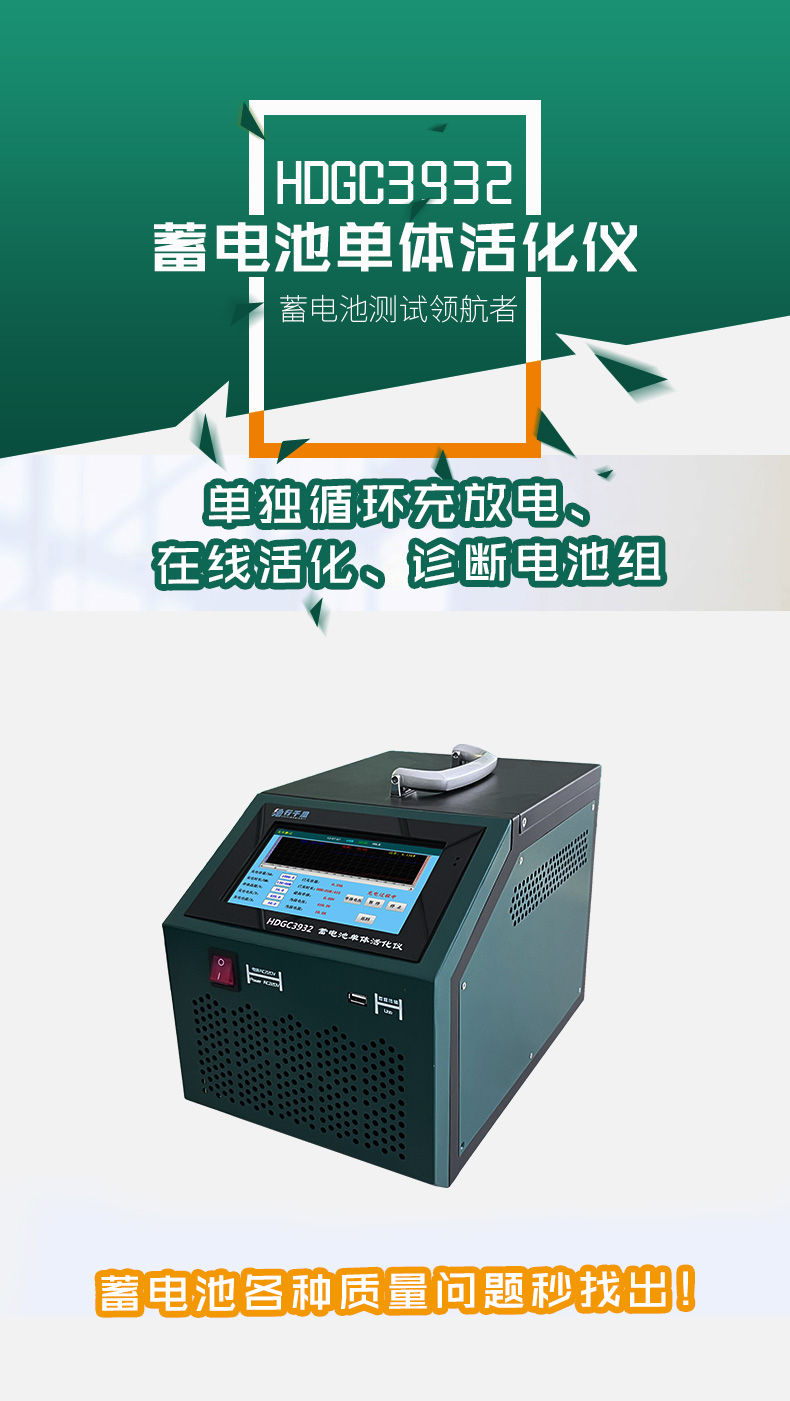 ? ? ? ?HDGC3932蓄電池單體活化儀采用高頻、低壓、大電流特點(diǎn)在定向電流的作用下分解緊附在電池極板表面的硫酸鉛結(jié)晶體,重新還原成鉛離子,從而實(shí)現(xiàn)蓄電池充電及修復(fù)功能。是集蓄電池恒流放電、智能充電和充放電循環(huán)于一體的測(cè)試設(shè)備,是針對(duì)該落后電池進(jìn)行循環(huán)充放電,深度充放電,激活電池活性物質(zhì),達(dá)到活化目的。