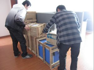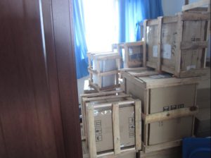 待發(fā)貨區(qū)以存放滿今天需要發(fā)出的儀器,堆積如山.